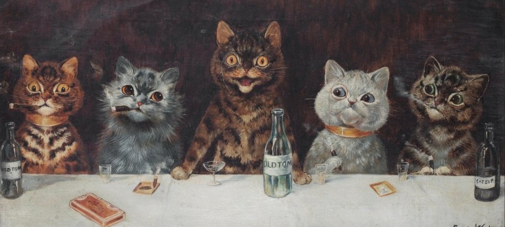 Finally recognized as an artist in his own right, Louis became part of a social group that included some of the artists who had originally inspired him. Among them were illustrators for Punch and the Illustrated London News such as Harry Furniss, Alfred Praga, Phil May and Linley Sambourne. They would often meet socially in Fleet Street bars, or at Phil May’s Kensington studio, which was at that time a Mecca of all the artists and journalists of London. May’s satirical studies of day-to-day Victorian life were particularly influential for Wain. He adopted a similarly humorous style in his cat pictures, leading to his being dubbed ‘The Hogarth of Cat Life’ by Sir Frank Burnand, the editor of Punch.